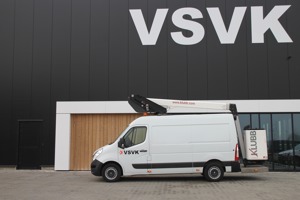 Ontdek de KLUBB K38P Hoogwerker op opengewerkte bestelwagen. Met dit model kunt u een werkhoogte van 13,8 m en een offset van 8,2 m bereiken.